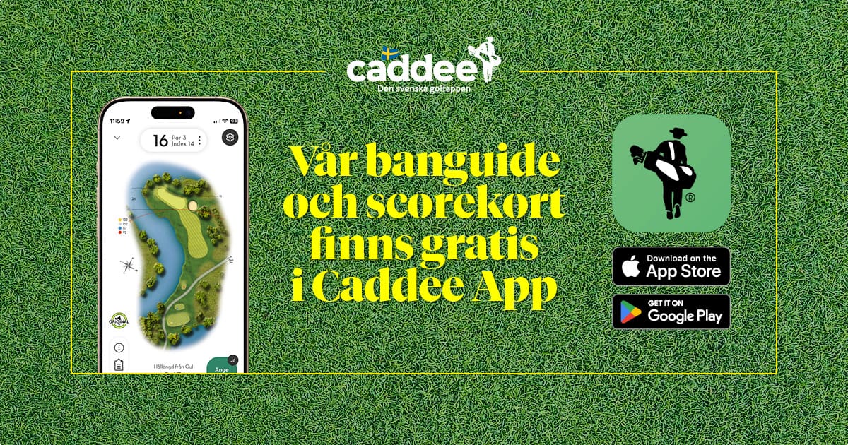 I Caddee finns vår officiella banguide, digitalt scorekort och GPS-mått. Dina bokade starttider hämtas automatiskt från MinGolf och du kan enkelt skicka in HCP-registrering efter ronden.